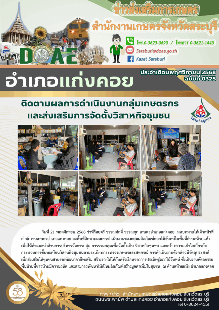 ติดตามผลการดำเนินการ กลุ่มเกษตรกรและส่งเสริมการจัดตั้งวิสาหกิจชุมชนBy สำนักงานเกษตรอำเภอแก่งคอย / 21/11/2025