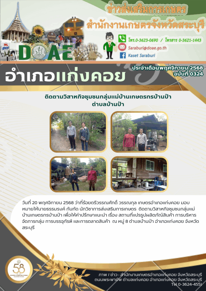 ติดตามวิสาหกิจชุมชนกลุ่มแม่บ้านเกษตรกรบ้านป่า ต.บ้านป่า อ.แก่งคอย จ.สระบุรีBy สำนักงานเกษตรอำเภอแก่งคอย / 21/11/2025