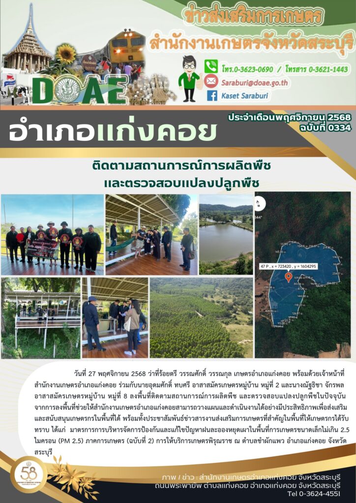 ลงพื้นที่ติดตามสถานการณ์การผลิตพืช และตรวจสอบแปลงปลูกพืชในปัจจุบัน ตำบลชำผักแพว อำเภอแก่งคอย จังหวัดสระบุรีBy สำนักงานเกษตรอำเภอแก่งคอย / 28/11/2025