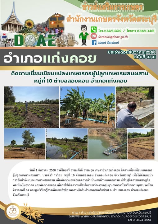 ติดตามเยี่ยมเยียนแปลงเกษตรกรผู้ปลูกเกษตรผสมผสาน หมู่ที่ 10 ตำบลสองคอน อำเภอแก่งคอย จังหวัดสระบุรีBy สำนักงานเกษตรอำเภอแก่งคอย / 01/12/2025