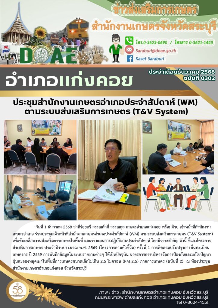 ประชุมสำนักงานเกษตรอำเภอประจำสัปดาห์ (WM) ตามระบบส่งเสริมการเกษตร (T&V System)By สำนักงานเกษตรอำเภอแก่งคอย / 01/12/2025
