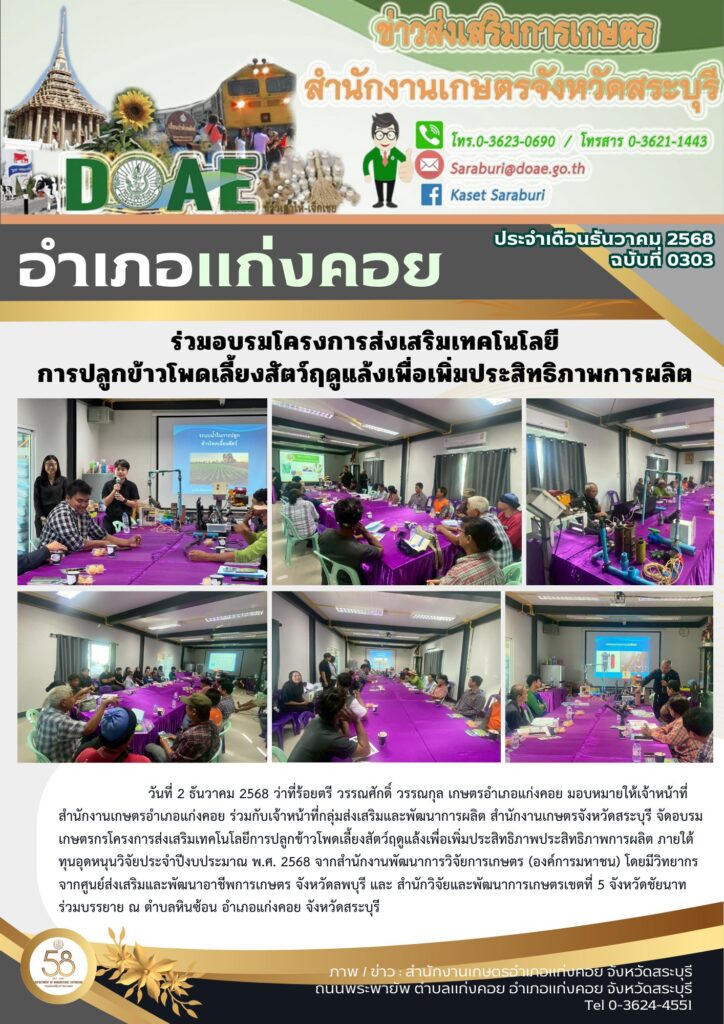 ร่วมอบรมโครงการส่งเสริมเทคโนโลยี การปลูกข้าวโพดเลี้ยงสัตว์ฤดูแล้งเพื่อเพิ่มประสิทธิภาพการผลิตBy สำนักงานเกษตรอำเภอแก่งคอย / 02/12/2025