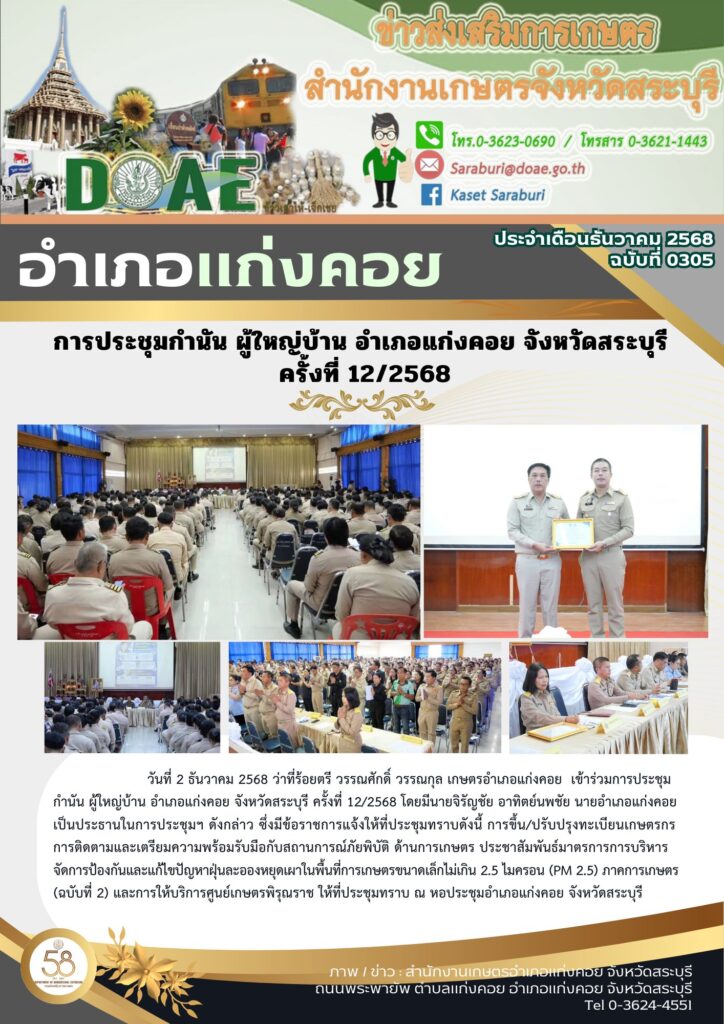 ประชุมกำนัน ผู้ใหญ่บ้าน อำเภอแก่งคอย จังหวัดสระบุรี ประจำเดือน ธันวาคม 2568 ครั้งที่ 12/2568By สำนักงานเกษตรอำเภอแก่งคอย / 02/12/2025