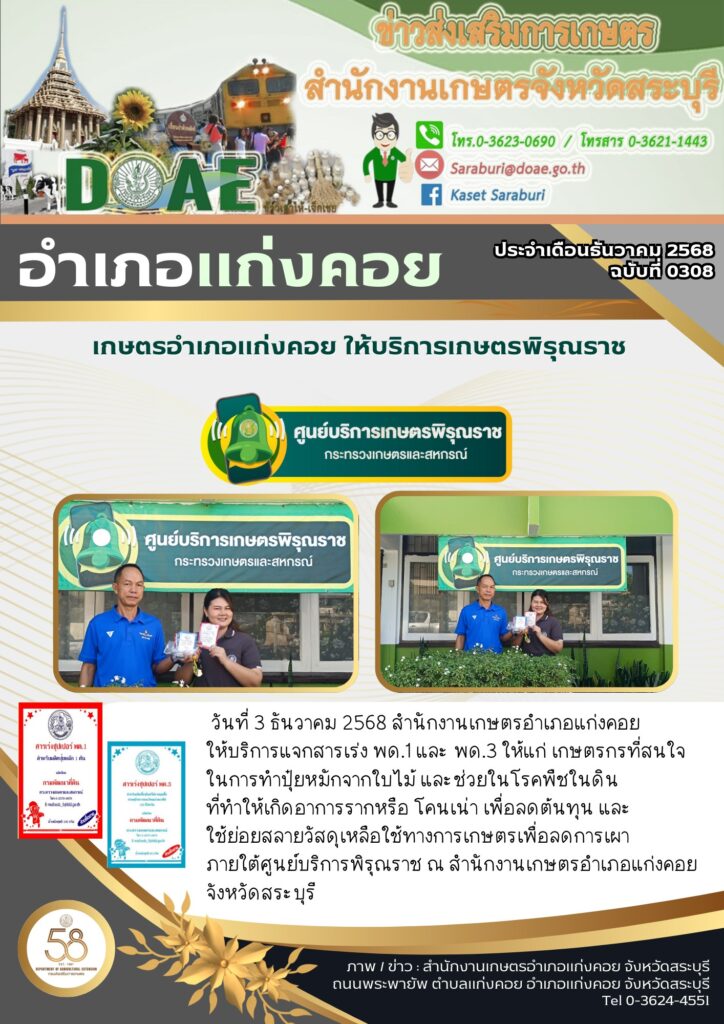 สำนักงานเกษตรอำเภอแก่งคอย : ให้บริการศูนย์บริการเกษตรพิรุณราชBy สำนักงานเกษตรอำเภอแก่งคอย / 03/12/2025