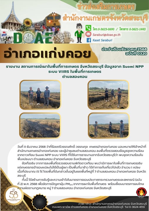 ลงพื้นที่ตรวจสอบข้อมูลจุดความร้อนจากดาวเทียม Suomi NPP ระบบ VIIRSBy สำนักงานเกษตรอำเภอแก่งคอย / 07/12/2025