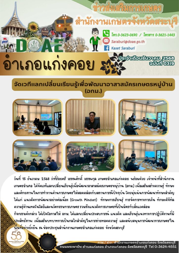 สำนักงานเกษตรอำเภอแก่งคอย จัดเวทีแลกเปลี่ยนเรียนรู้เพื่อพัฒนาอาสาสมัครเกษตรหมู่บ้าน (อกม.)By สำนักงานเกษตรอำเภอแก่งคอย / 15/12/2025