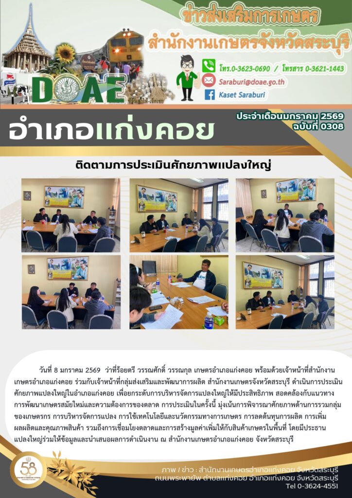 สำนักงานเกษตรจังหวัดสระบุรี ดำเนินการประเมินศักยภาพแปลงใหญ่ในอำเภอแก่งคอย เพื่อยกระดับการบริหารจัดการแปลงใหญ่ให้มีประสิทธิภาพBy สำนักงานเกษตรอำเภอแก่งคอย / 26/01/2026