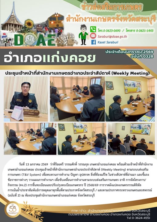 ประชุมเจ้าหน้าที่สำนักงานเกษตรอำเภอประจำสัปดาห์ (Weekly Meeting) ตามระบบส่งเสริมการเกษตร (T&V System)By สำนักงานเกษตรอำเภอแก่งคอย / 26/01/2026