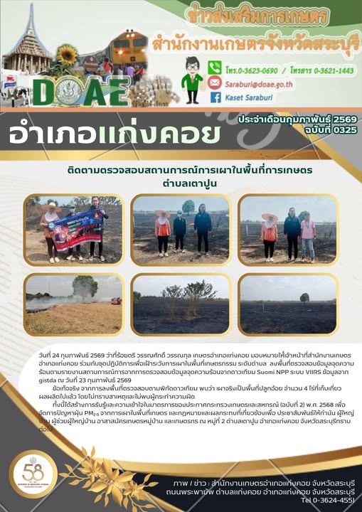 ลงพื้นที่ตรวจสอบข้อมูลจุดความร้อนตามรายงานสถานการณ์การจากการตรวจสอบข้อมูลจุดความร้อนจากดาวเทียม Suomi NPP ระบบ VIIRS ข้อมูลจาก gistdaBy สำนักงานเกษตรอำเภอแก่งคอย / 04/03/2026