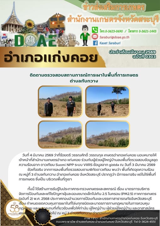 ลงพื้นที่ตรวจสอบข้อมูลจุดความร้อนจากดาวเทียม Suomi NPP ระบบ VIIRS ข้อมูลจาก gistda ตำบลทับกวางBy สำนักงานเกษตรอำเภอแก่งคอย / 11/03/2026