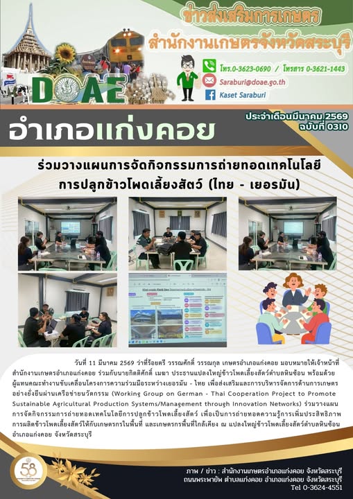 วางแผนการจัดกิจกรรมการถ่ายทอดเทคโนโลยีการปลูกข้าวโพดเลี้ยงสัตว์ โครงการความร่วมมือระหว่างเยอรมัน – ไทยBy สำนักงานเกษตรอำเภอแก่งคอย / 27/03/2026