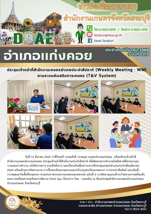 ประชุมเจ้าหน้าที่สำนักงานเกษตรอำเภอประจำสัปดาห์ (Weekly Meeting : WM) ตามระบบส่งเสริมการเกษตร (T&V System)By สำนักงานเกษตรอำเภอแก่งคอย / 27/03/2026