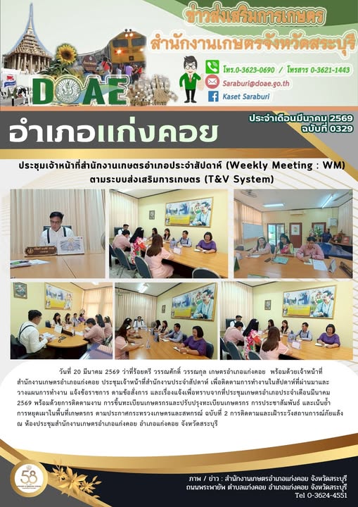 ประชุมเจ้าหน้าที่สำนักงานเกษตรอำเภอประจำสัปดาห์ (Weekly Meeting : WM) ตามระบบส่งเสริมการเกษตร (T&V System)By สำนักงานเกษตรอำเภอแก่งคอย / 27/03/2026