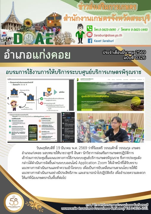เข้าร่วมการประชุมชี้แจงแนวทางการใช้งานระบบศูนย์บริการเกษตรพิรุณราช ผ่านระบบออนไลน์ Application ZoomBy สำนักงานเกษตรอำเภอแก่งคอย / 27/03/2026
