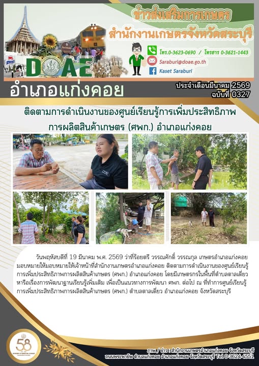 ติดตามการดำเนินงานของศูนย์เรียนรู้การเพิ่มประสิทธิภาพการผลิตสินค้าเกษตร (ศพก.) อำเภอแก่งคอยBy สำนักงานเกษตรอำเภอแก่งคอย / 27/03/2026