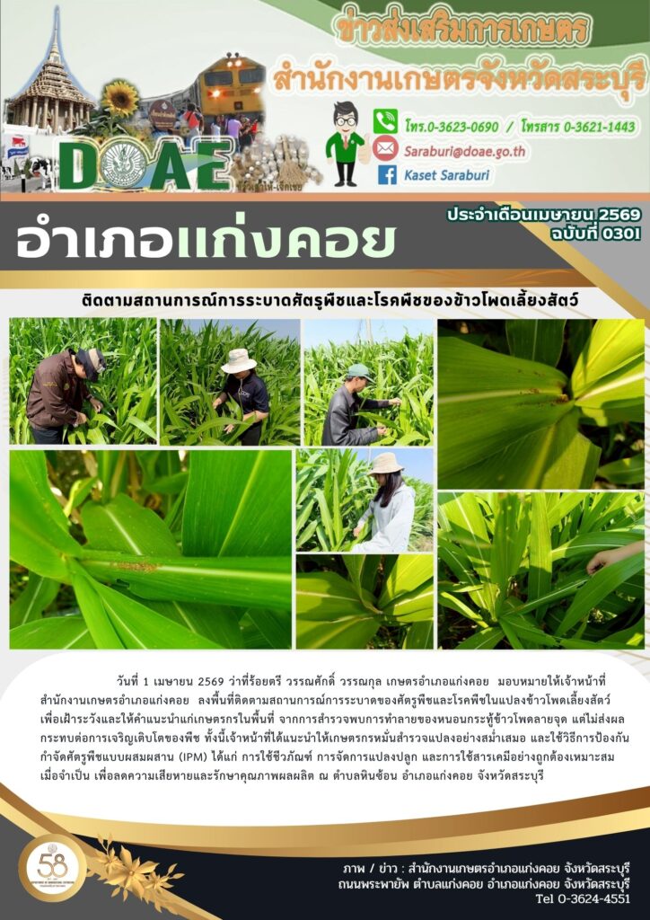 ลงพื้นที่ติดตามสถานการณ์การระบาดของศัตรูพืชและโรคพืชในแปลงข้าวโพดเลี้ยงสัตว์By สำนักงานเกษตรอำเภอแก่งคอย / 01/04/2026