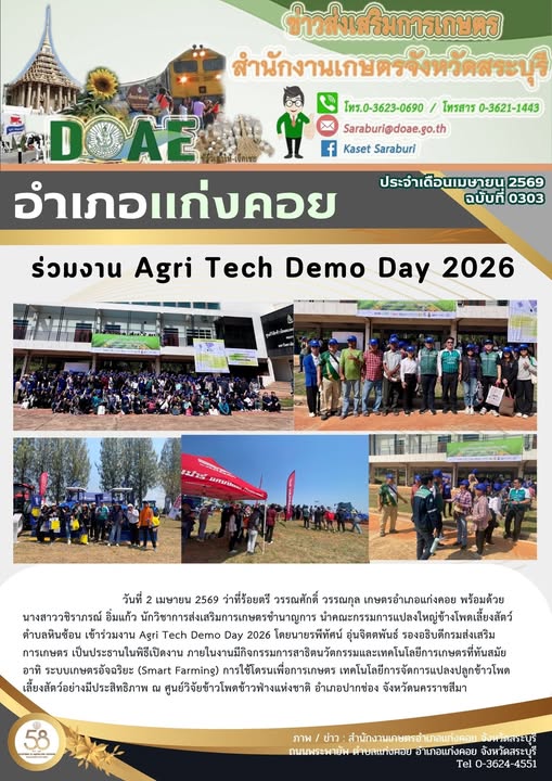 สำนักงานเกษตรอำเภอแก่งคอย ร่วมงาน Agri Tech Demo Day 2026 ณ ศูนย์วิจัยข้าวโพดข้าวฟ่างแห่งชาติBy สำนักงานเกษตรอำเภอแก่งคอย / 02/04/2026