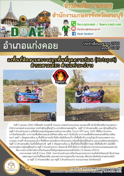 ลงพื้นที่ติดตามตรวจสอบพื้นที่จุดความร้อน (Hotspot) ตำบลตาลเดี่ยว ตำบลท่ามะปรางBy สำนักงานเกษตรอำเภอแก่งคอย / 09/04/2026