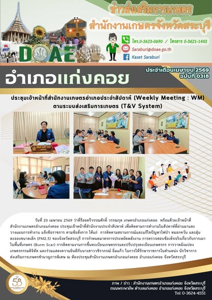ประชุมเจ้าหน้าที่สำนักงานเกษตรอำเภอประจำสัปดาห์ (Weekly Meeting : WM) ตามระบบส่งเสริมการเกษตร (T&V System)By สำนักงานเกษตรอำเภอแก่งคอย / 24/04/2026