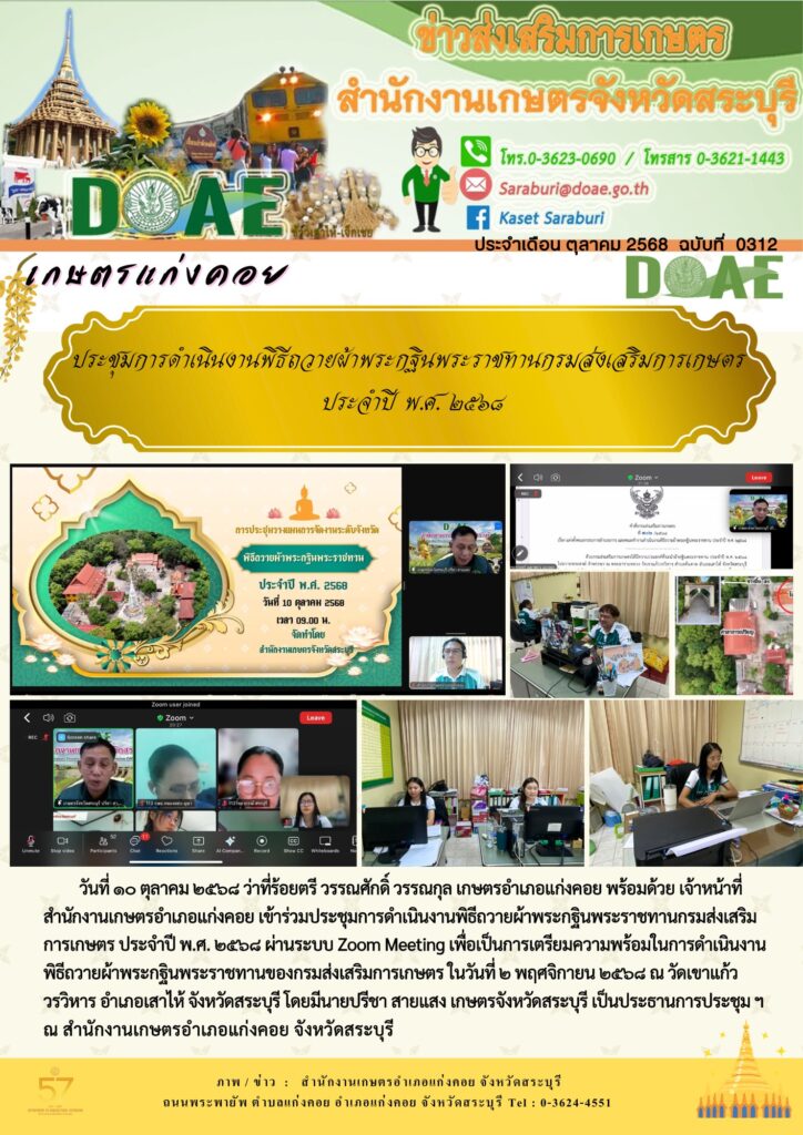 ประชุมการดำเนินงานถวายผ้าพระกฐินพระราชทานกรมส่งเสริมการเกษตร ประจำปี 2568By สำนักงานเกษตรอำเภอแก่งคอย / 10/10/2025
