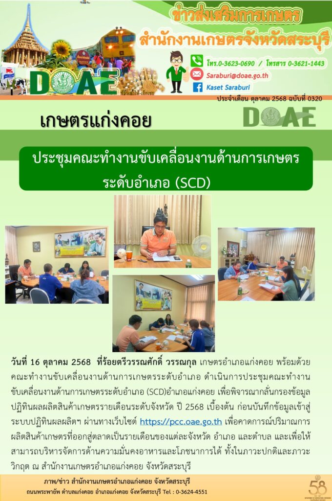 ประชุมคณะทำงานขับเคลื่อนงานด้านการเกษตรระดับอำเภอ (SCD)อำเภอแก่งคอยBy สำนักงานเกษตรอำเภอแก่งคอย / 16/10/2025