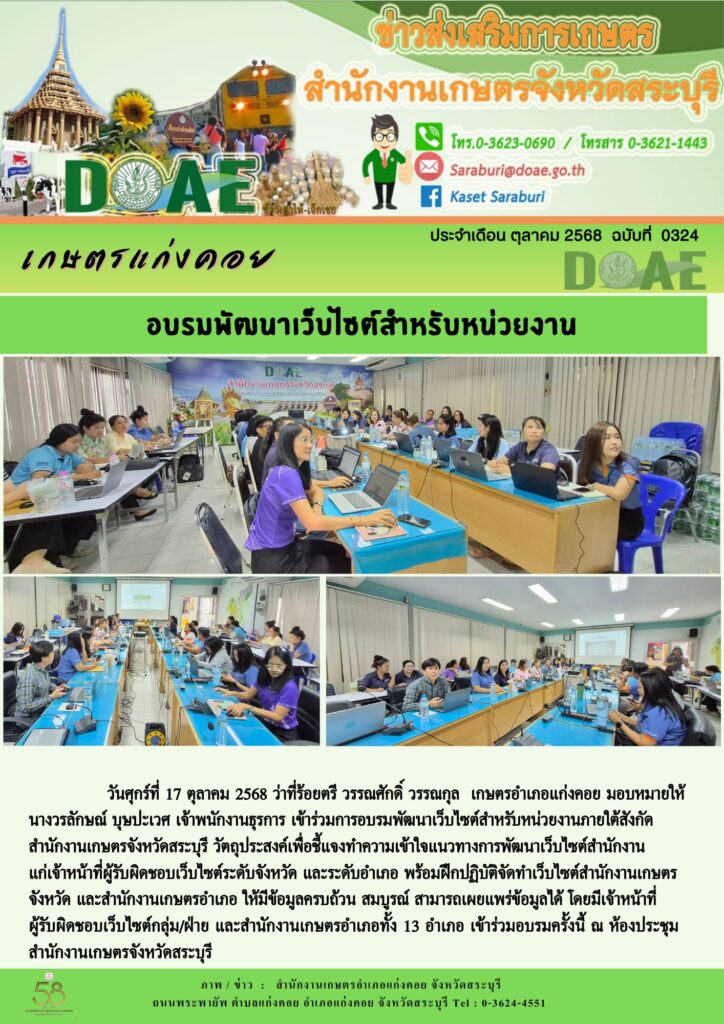 อบรมพัฒนาเว็บไซต์สำหรับหน่วยงานภายใต้สังกัดสำนักงานเกษตรจังหวัดสระบุรีBy สำนักงานเกษตรอำเภอแก่งคอย / 17/10/2025
