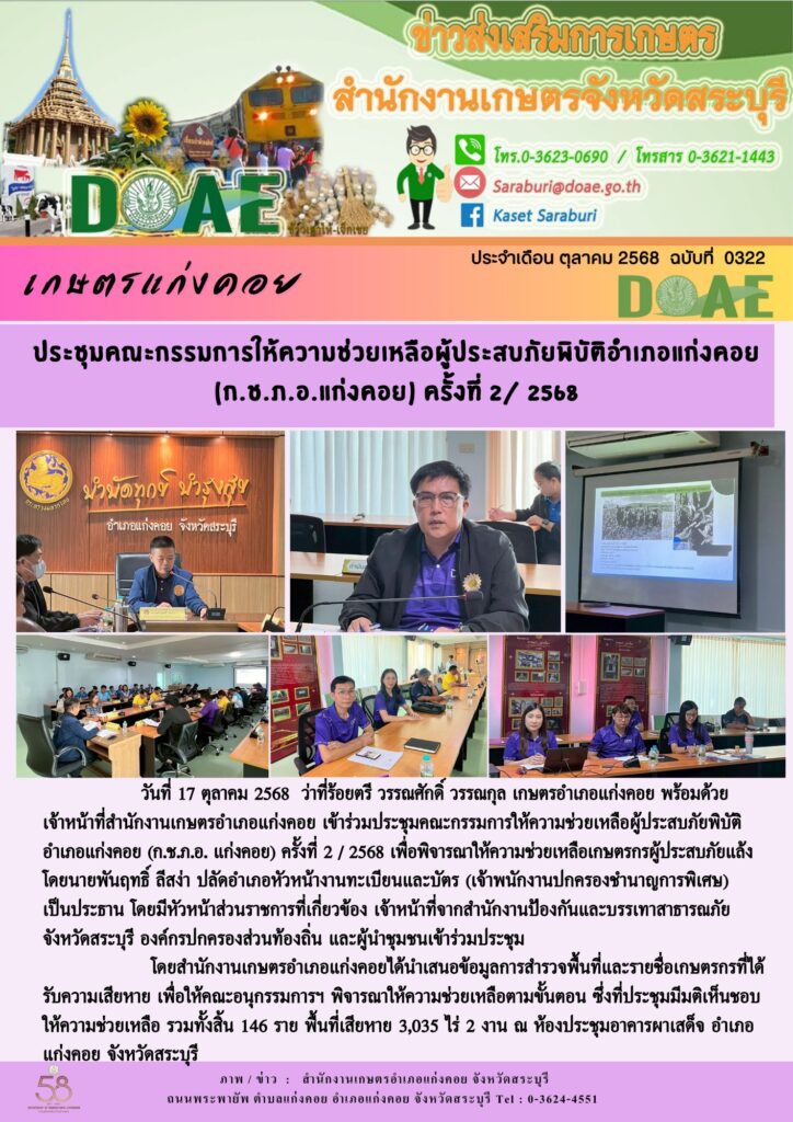 ประชุมคณะกรรมการให้ความช่วยเหลือผู้ประสบภัยพิบัติอำเภอแก่งคอย (ก.ช.ภ.อ. แก่งคอย) ครั้งที่ 2 / 2568By สำนักงานเกษตรอำเภอแก่งคอย / 17/10/2025