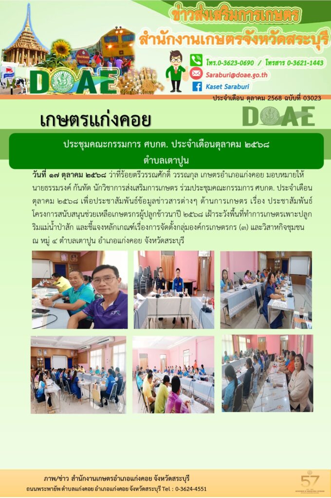 ประชุมคณะกรรมการ ศบกต. ตำบลเตาปูน อำเภอแก่งคอย จังหวัดสระบุรี ประจำเดือนตุลาคม 2568By สำนักงานเกษตรอำเภอแก่งคอย / 17/10/2025
