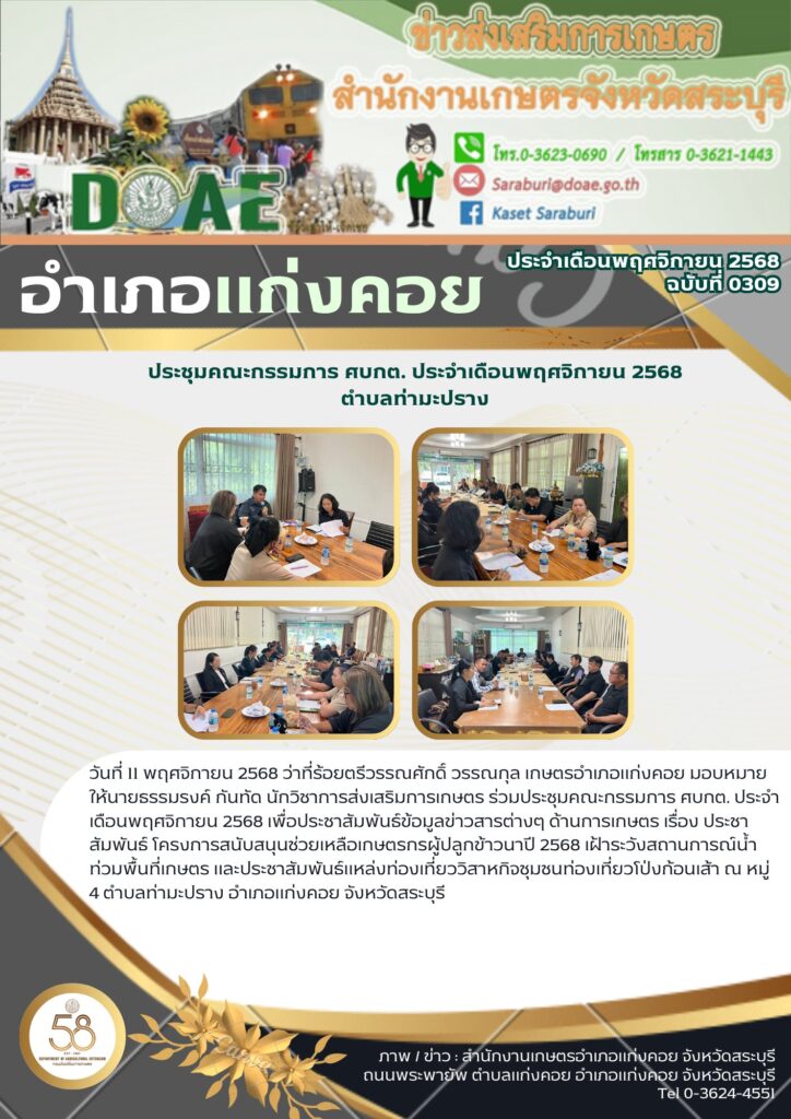 ร่วมประชุมคณะกรรมการ ศบกต. ประจำเดือนพฤศจิกายน 2568 ตำบลท่ามะปราง อำเภอแก่งคอย จังหวัดสระบุรีBy สำนักงานเกษตรอำเภอแก่งคอย / 12/11/2025