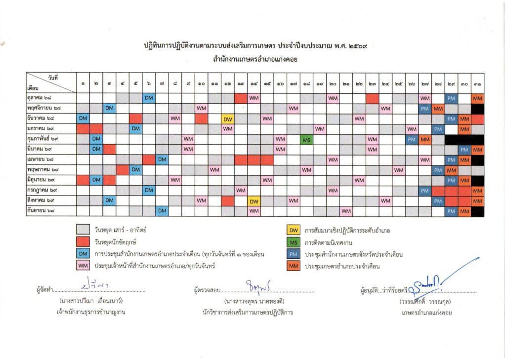 ปฏิทินการปฏิบัติงานตามระบบส่งเสริมการเกษตร ประจำปีงบประมาณ พ.ศ. 2569