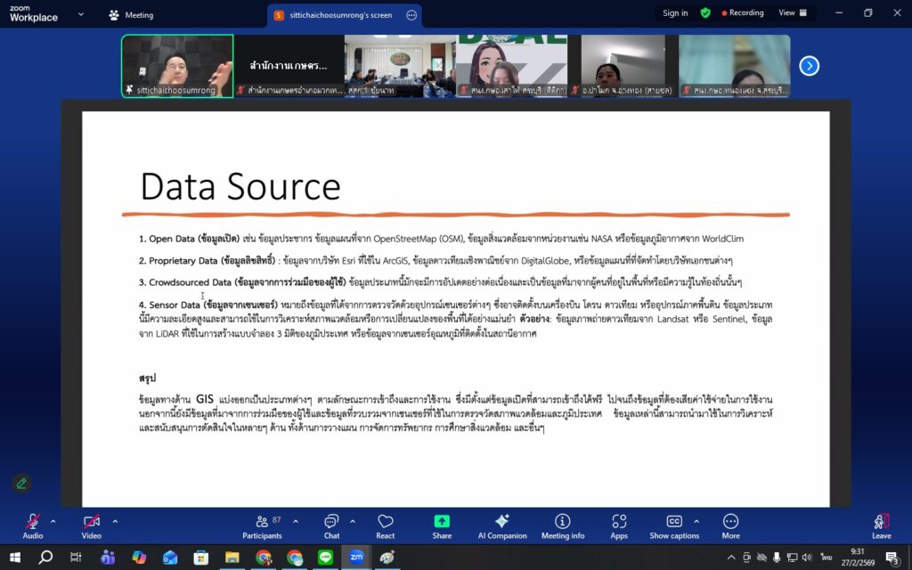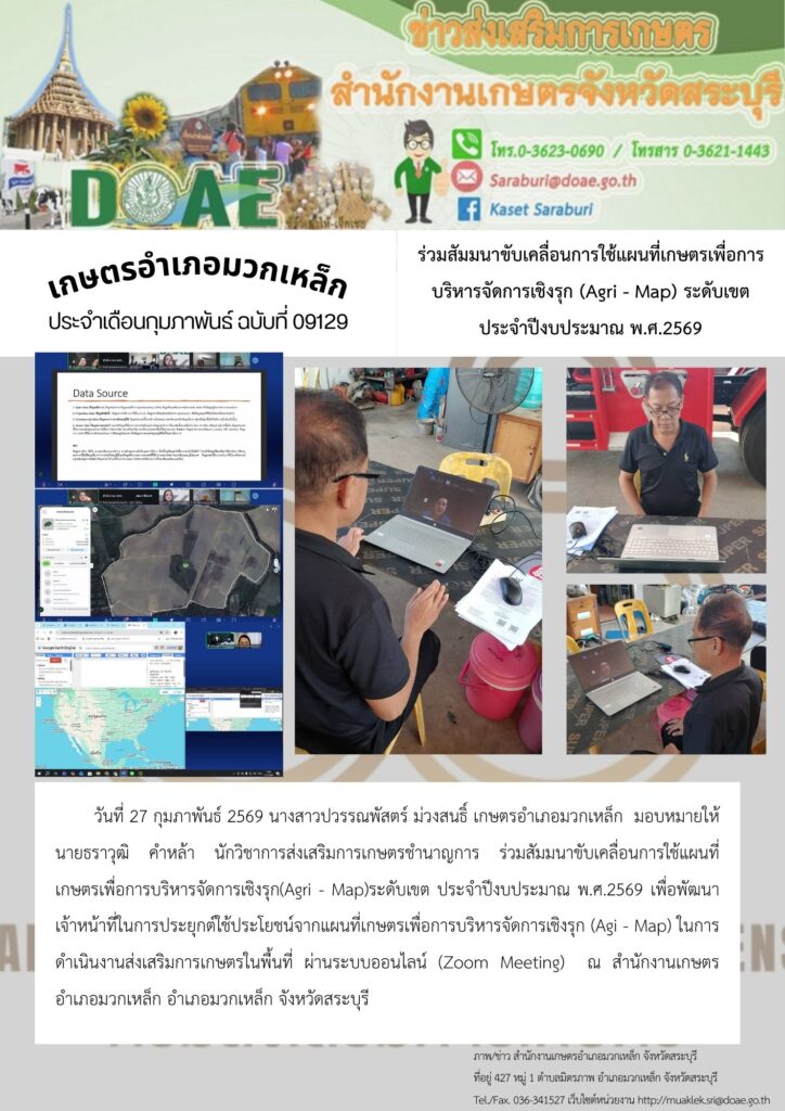 วันที่ 27 กุมภาพันธ์ 2569 นางสาวปวรรณพัสตร์ ม่วงสนธิ์ เกษตรอำเภอมวกเหล็ก มอบหมายให้ นายธราวุฒิ คำหล้า นักวิชาการส่งเสริมการเกษตรชำนาญการ ร่วมสัมมนาขับเคลื่อนการใช้แผนที่เกษตรเพื่อการบริหารจัดการเชิงรุก(Agri – Map)ระดับเขต ประจำปีงบประมาณ พ.ศ.2569 เพื่อพัฒนาเจ้าหน้าที่ในการประยุกต์ใช้ประโยชน์จากแผนที่เกษตรเพื่อการบริหารจัดการเชิงรุก (Agi – Map) ในการดำเนินงานส่งเสริมการเกษตรในพื้นที่ ผ่านระบบออนไลน์ (Zoom Meeting) ณ สำนักงานเกษตรอำเภอมวกเหล็ก อำเภอมวกเหล็ก จังหวัดสระบุรี