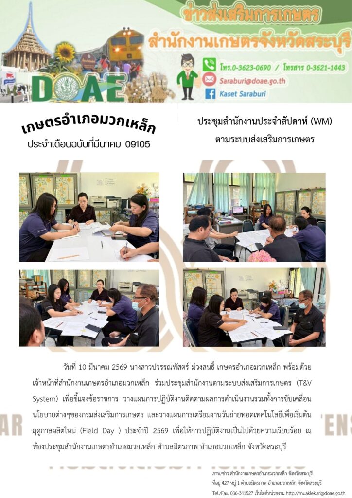 รับคณะติดตามนิเทศงานตามระบบส่งเสริมการเกษตร ประจำปีงบประมาณ พ.ศ. ๒๕๖๙