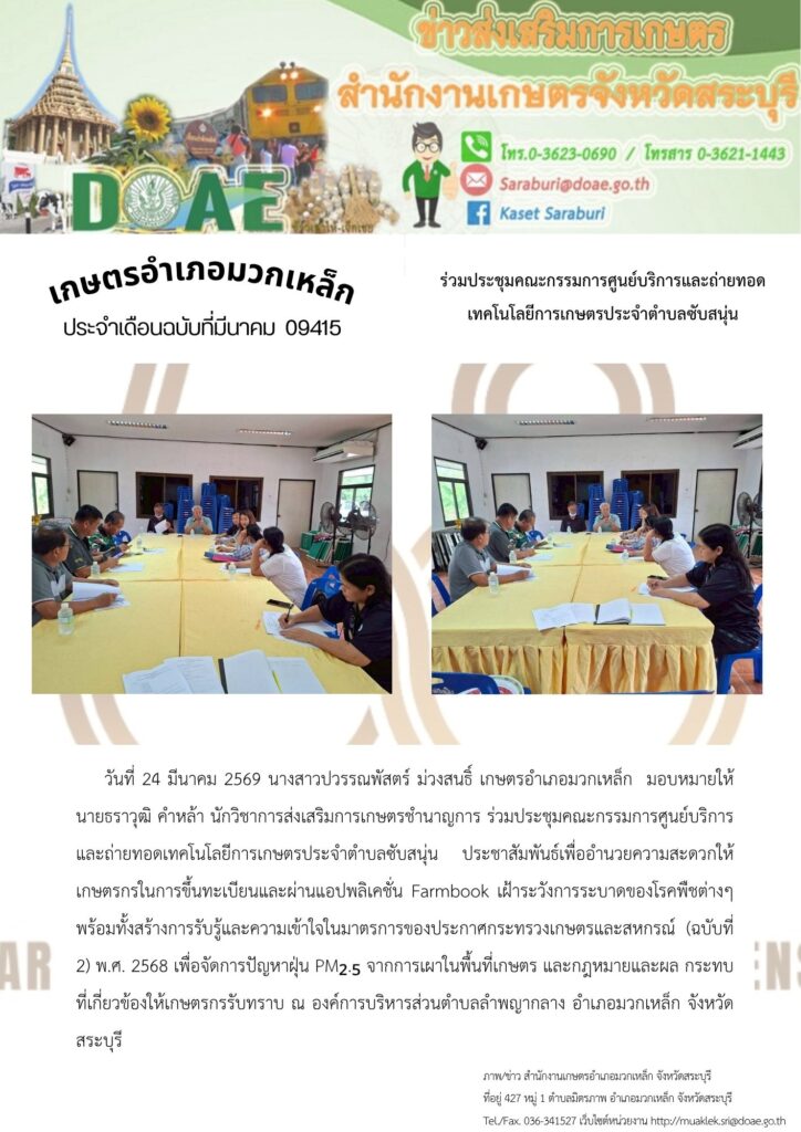ร่วมประชุมคณะกรรมการศูนย์บริการและถ่ายทอดเทคโนโลยีการเกษตรประจำตำบลซับสนุ่นBy muakleksrb / 24/03/2026