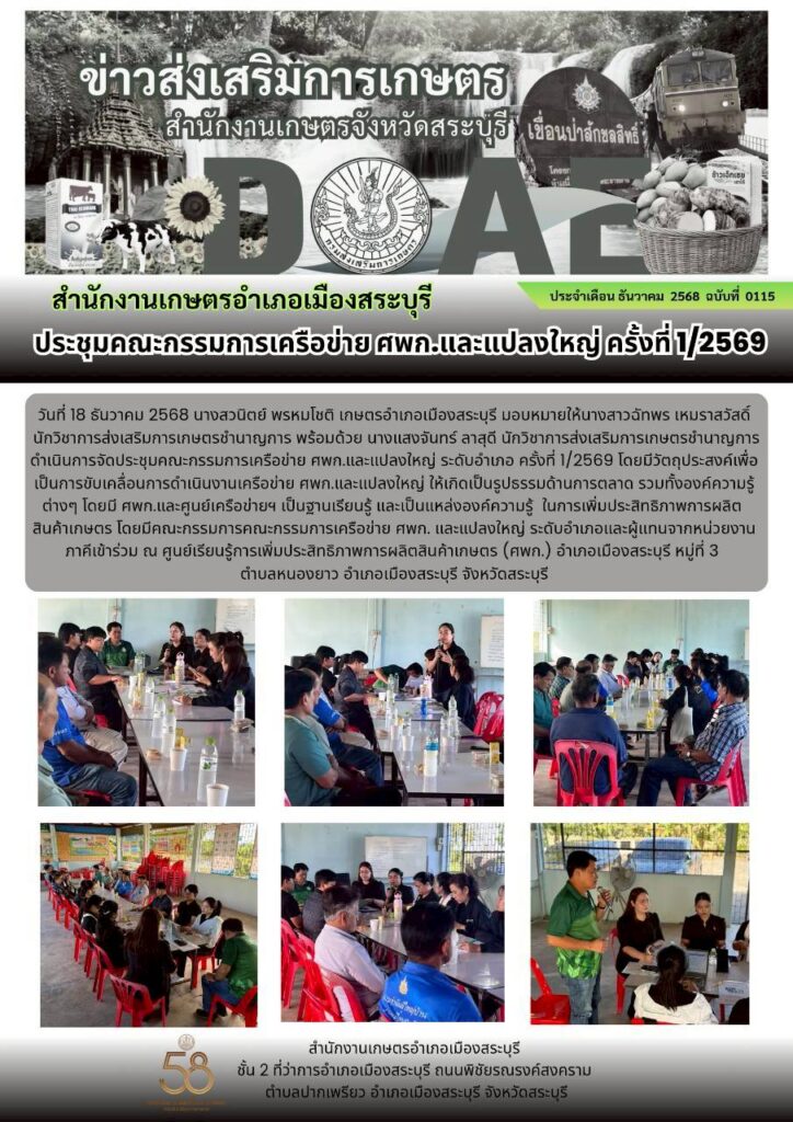 เกษตรเมืองสระบุรี : ประชุมกรรมการเครื่อข่าย ศพก.และแปลงใหญ่ ครั้งที่ 1/2569By mueangsaraburi / 18/12/2025