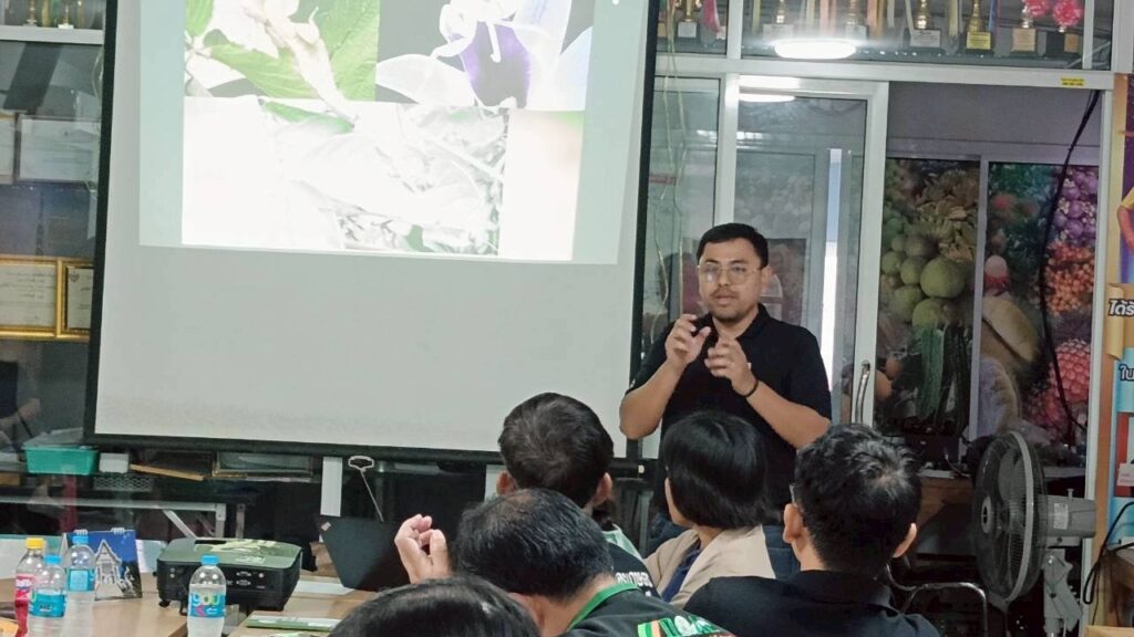 วันที่ 26 ธันวาคม 2568 นางสวนิตย์ พรหมโชติ เกษตรอำเภอเมืองสระบุรี มอบหมายให้นางสาวภัคจิรา เกลี้ยงทองคำ นักวิชาการส่งเสริมการเกษตรชำนาญการ พร้อมด้วย นายบุญทองศักดิ์ มอยฟู นางดวงใจ มอยฟู และปริยาภร เพียรพฤกษา หมอพืชชุมชน เข้าร่วมโครงการส่งเสริมการจัดการสุขภาพพืชเพื่อเพิ่มประสิทธิภาพการผลิตสินค้าเกษตร กิจกรรม ติดตาม ประเมิน และรองรับการเผชิญเหตุการณ์ การระบาดของศัตรูพืช กิจกรรมสนับสนุนการวินิจฉัยและการจัดการศัตรูพืช เพื่ออบรมเรียนรู้ การวินิจฉัยศัตรูพืชเบื้องต้น การจำแนกศัตรูพืช ศัตรูธรรมชาติ การสุ่มสำรวจประเมินพื้นที่ระบาด รวมถึงการเรียนรู้ เรื่องการสาธิตการผลิตชีวภัณฑ์ (เห็ดเรืองแสงสิรินรัศมี) พร้อมประเมินสถานการณ์การระบาดศัตรูพืช และวางแผนรับมือสถานการณ์การระบาดที่อาจเกิดขึ้น โดยมีวิทยากรจากศูนย์ส่งเสริมเทคโนโลยีการเกษตรด้านอารักขาพืช จังหวัดชัยนาท ณ วิสาหกิจชุมชนท่องเที่ยวเกษตรเชิงอนุรักษ์ชะอม อำเภอแก่งคอย จังหวัดสระบุรี