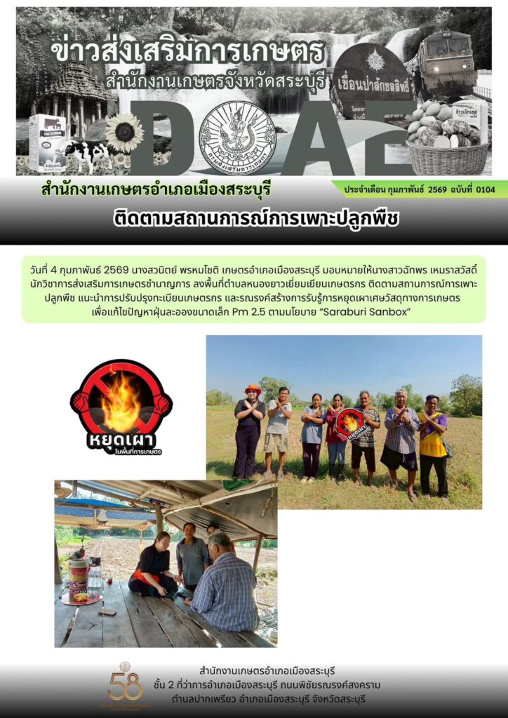 เกษตรเมืองสระบุรี : ติดตามสถานการณ์การเพาะปลูกพืช และสร้างการรับรู้ “หยุดเผา”By mueangsaraburi / 04/02/2026