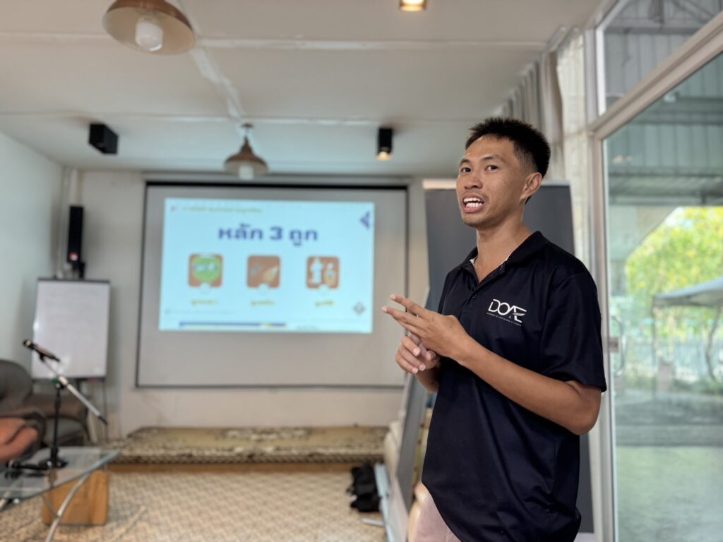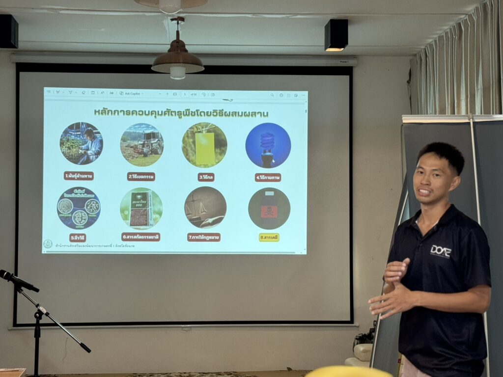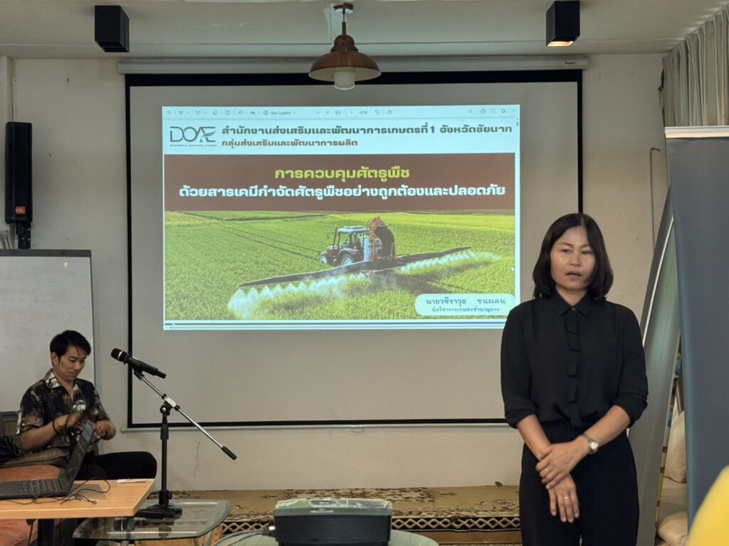 วันที่ 9 เมษายน 2569 นางสวนิตย์ พรหมโชติ เกษตรอำเภอเมืองสระบุรี พร้อมด้วย นางสาวภัคจิรา เกลี้ยงทองคำ นักวิชาการส่งเสริมการเกษตรชำนาญการและนางสาวนุจรีย์ คำขาว นักวิชาการส่งเสริมการเกษตร อบรมให้ความรู้กับผู้ปฏิบัติงานในแปลง เรื่องการใช้สารเคมีและการป้องกันอย่างถูกต้องโดยเจ้าหน้าที่กลุ่มอารักขาพืช สำนักงานเกษตรจังหวัดสระบุรีเป็นวิทยากร พร้อมทั้งเยี่ยมเยียนเกษตรกร ติดตามสถานการณ์การผลิตพืช และรณรงค์สร้างการรับรู้การหยุดเผาเศษวัสดุทางการเกษตร เพื่อแก้ไขปัญหาฝุ่นละอองขนาดเล็ก Pm 2.5 ตามนโยบาย “Saraburi Sanbox” ณ The Vira Farm ตำบลกุดนกเปล้า อำเภอเมืองสระบุรี