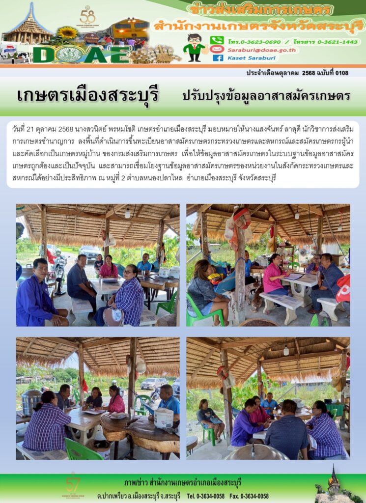 เกษตรเมืองสระบุรี : ดำเนินการขึ้นทะเบียนอาสาสมัครเกษตรกระทรวงเกษตรและสหกรณ์และสมัครเกษตรกรผู้นำเพื่อคัดเลือกเป็นเกษตรหมู่บ้านBy mueangsaraburi / 21/10/2025