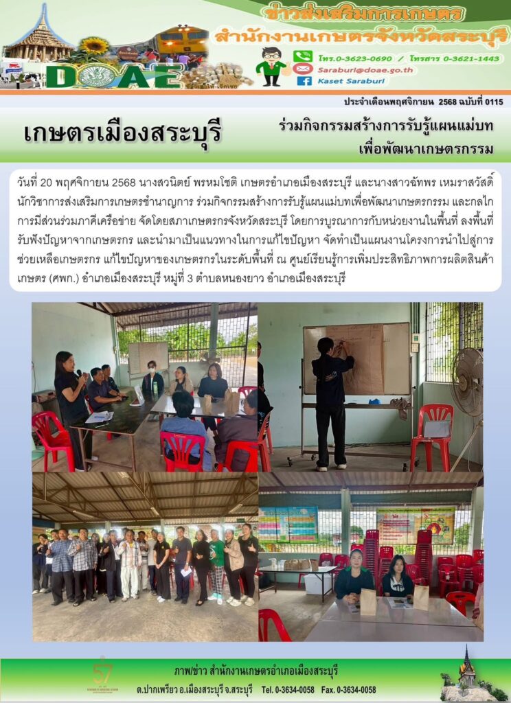 เกษตรเมืองสระบุรี : ร่วมกิจกรรมสร้างการรับรู้แผนแม่บท เพื่อพัฒนาเกษตรกรรมBy mueangsaraburi / 20/11/2025