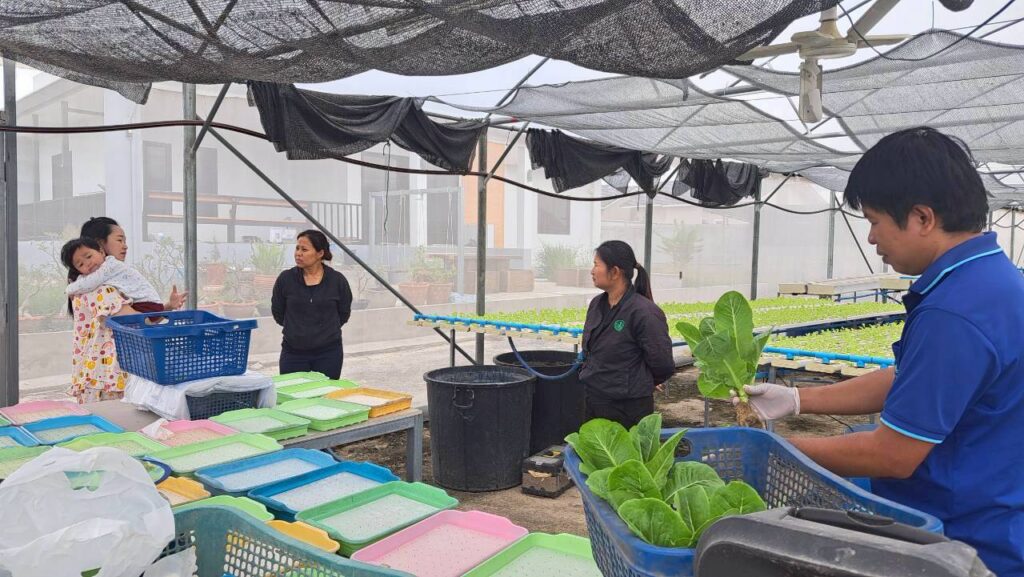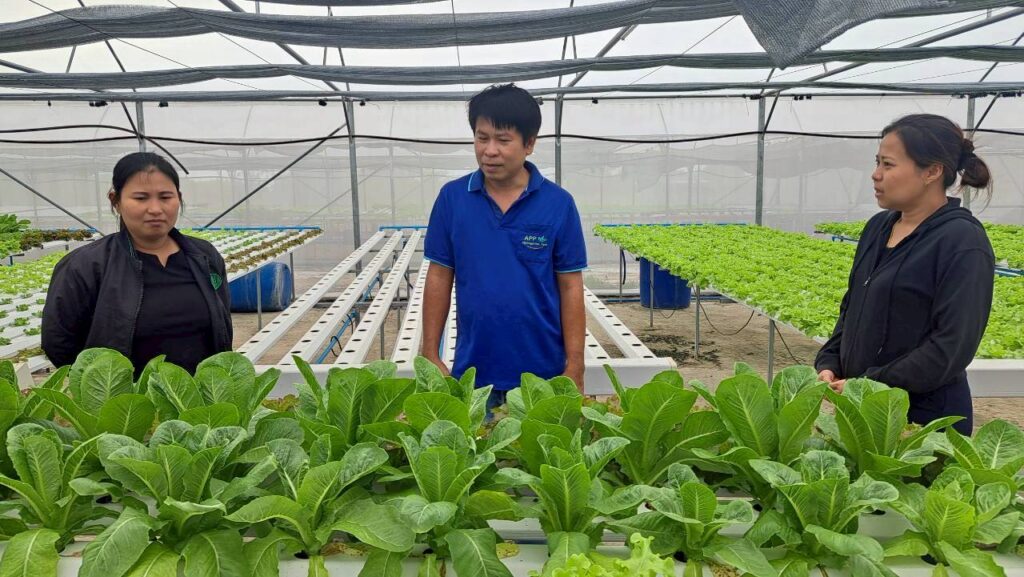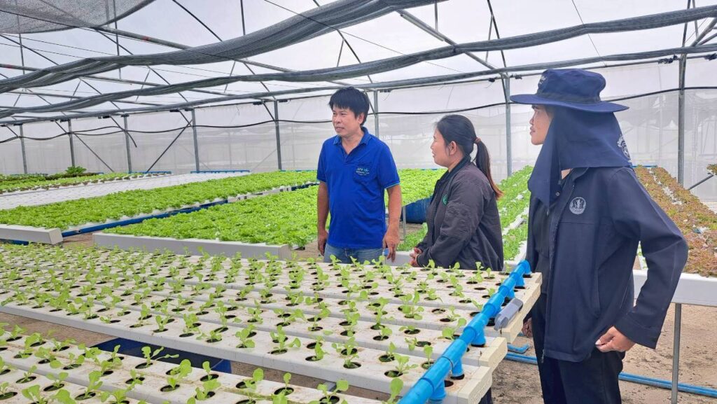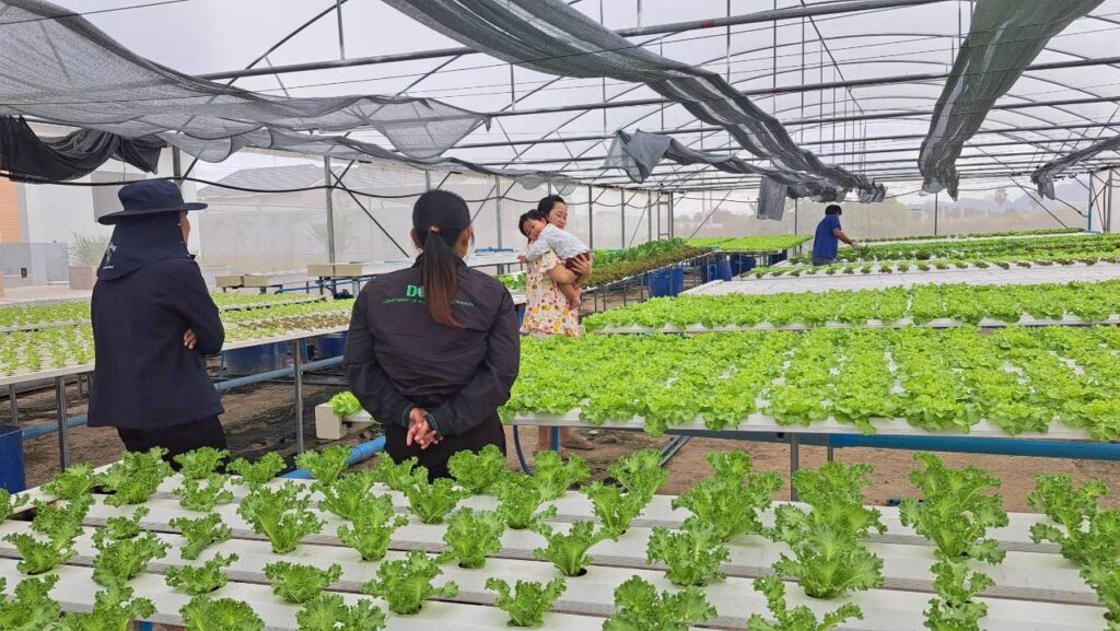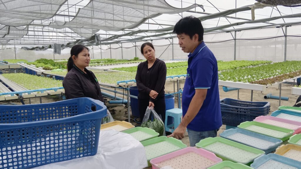 2. ติดตามและเยี่ยมเยียนเกษตรกรผู้ปลูกผักไฮโดรโปรนิกส์ในโรงเรือน พร้อมทั้งสอบถามปัญหาอุปสรรคในการดำเนินกิจกรรม ภาวะการตลาด และการผลิตของเกษตรกร ณ APP ไฮโดรโปรนิกส์ฟาร์ม หมู่ 10 ตำบลบ้านกลับ อำเภอหนองโดน จังหวัดสระบุรี