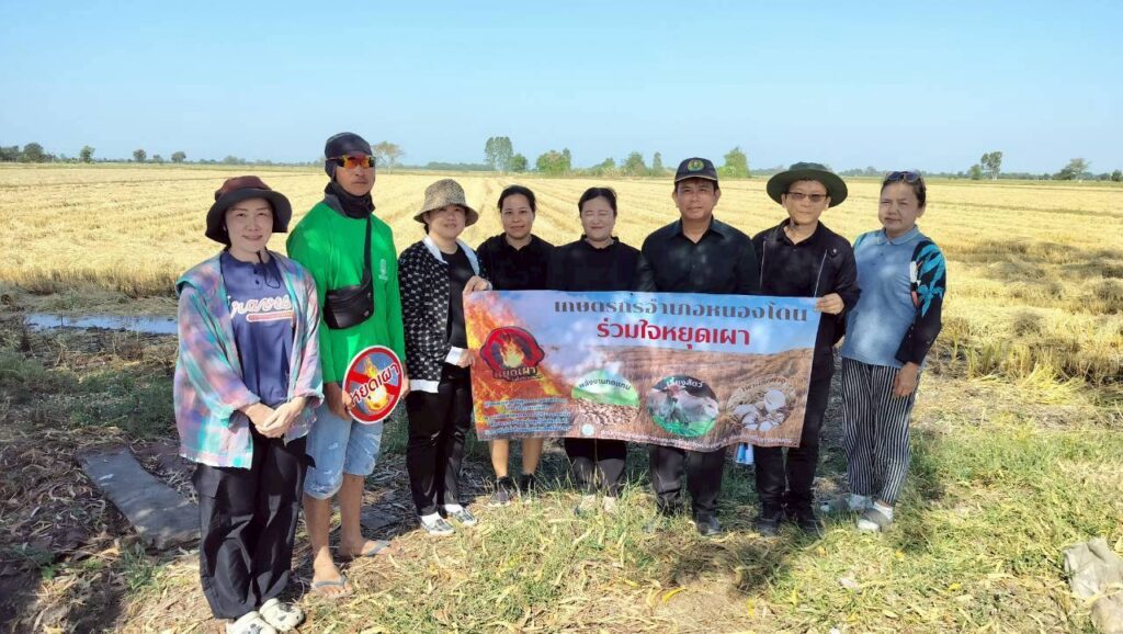วันที่ 8 ธันวาคม 2568 นายโกสินทร์ แสงสวงค์ เกษตรอำเภอหนองโดน พร้อมด้วยนางสาวมุธิตา สอดสุข ปลัดอำเภอประจำตำบล เจ้าหน้าที่สำนักงานเกษตรอำเภอหนองโดน ผู้นำชุมชนฯ อกม. และเกษตรกร หมู่ที่ 6 ตำบลบ้านกลับ ร่วมกันลงพื้นที่ตรวจสอบข้อมูลจุดความร้อนจากดาวเทียม Suomi NPP ระบบ VIIRS ซึ่งได้รับการรายงานจากจังหวัดสระบุรีว่า พบจุดความร้อนในพื้นที่แปลงนาข้าว ตำบลบ้านกลับ อำเภอหนองโดน จังหวัดสระบุรี ข้อเท็จจริงจากการลงพื้นที่ตรวจสอบตามพิกัดดาวเทียม พบว่า ไม่พบการเผาในพื้นที่การเกษตรตามพิกัดดังกล่าว ทั้งนี้ ได้ขอความร่วมมือการงดเผาในพื้นที่การเกษตร และประชาสัมพันธ์สร้างการรับรู้ ความเข้าใจมาตรการตามประกาศกระทรวงเกษตรและสหกรณ์ (ฉบับที่ 2) พ.ศ. 2568 เพื่อจัดการปัญหาฝุ่น PM2.5 จากการเผาในพื้นที่เกษตร, ประกาศสำนักงานป้องกันและบรรเทาสาธารณภัยจังหวัดสระบุรี เรื่อง กำหนดเขตควบคุมการเผาในที่โล่งทุกชนิดและมาตรการทางกฎหมายในการควบคุม เพื่อให้ผู้นำชุมชน อกม. ประชาสัมพันธ์แก่เกษตรกรในพื้นที่ได้รับทราบต่อไป ณ พื้นที่การเกษตร หมู่ 6 ตำบลบ้านกลับ อำเภอหนองโดน จังหวัดสระบุรี