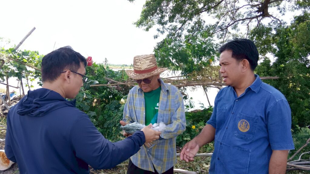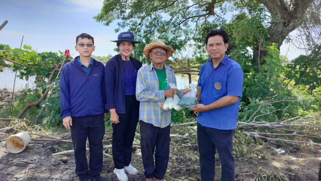 – ติดตามสถานการณ์ปลูกพืชในพื้นที่ ณ ม.1, 3 และ 5 ต.บ้านโปร่ง พบว่าเกษตรกรได้ทำการเก็บเกี่ยวข้าวแล้ว 100 % และมีส่วนที่ได้ทำการเพาะปลูกข้าวนาปีต่อเนื่องในบริเวณพื้นที่เสี่ยงภัยต่ำและพื้นที่ปกติ โดยอายุข้าวเฉลี่ยระหว่าง 7-60 วัน ในการนี้ ได้ติดตามการระบาดศัตรูพืชของมะละกอ พร้อมทั้งแนะนำการใช้ไตรเดอร์มาในการป้องกันกำจัดโรครากเน่าโคนเน่า และการใช้บิวเวอร์เรียในการป้องกันกำจัดแมลงศัตรูพืชของมะละกอ การดูแลรักษาณ ม.1 ต.บ้านโปร่ง