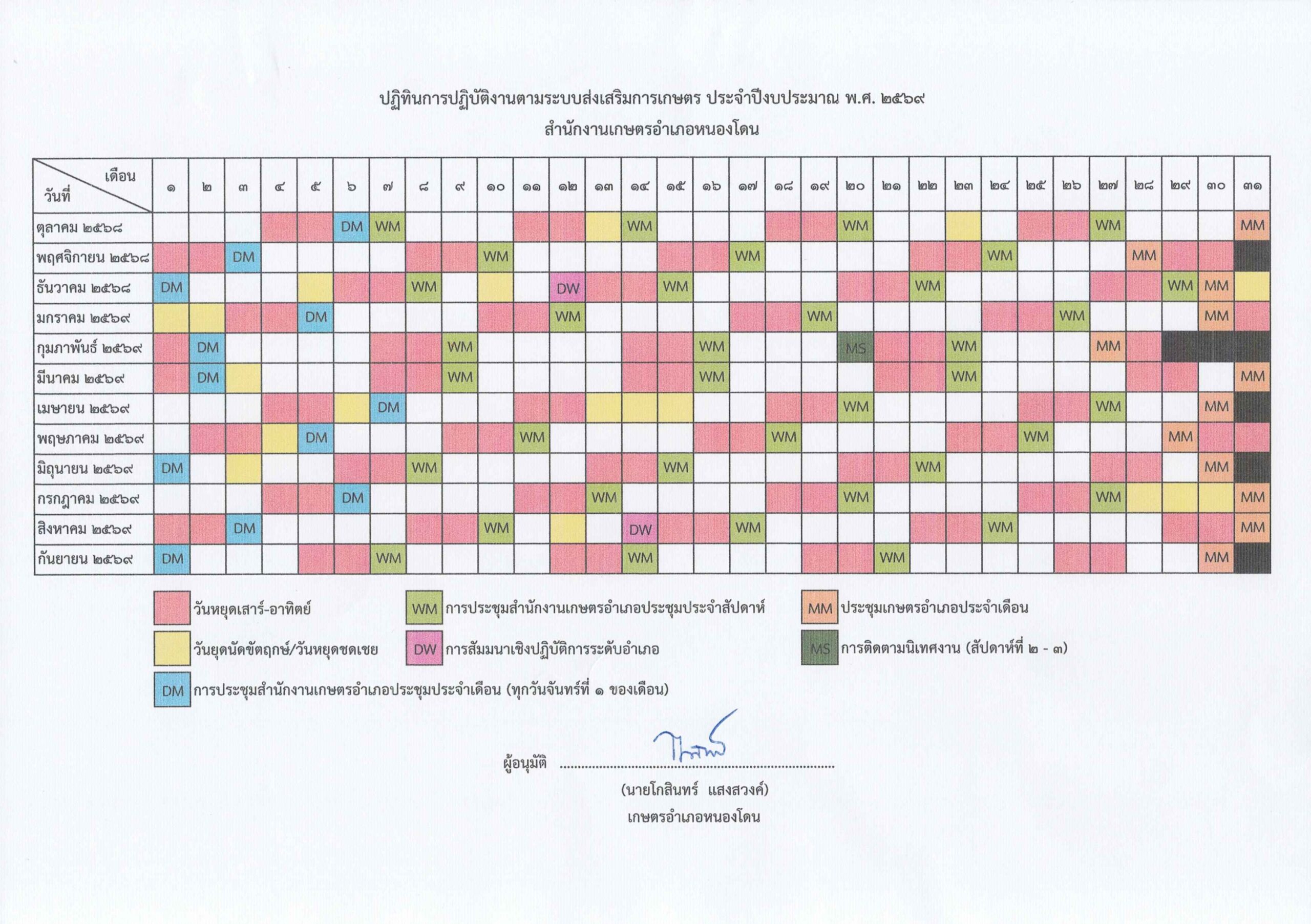 ปฏิทินการปฏิบัติงานตามระบบส่งเสริมการเกษตร ประจำปีงบประมาณ พ.ศ. 2569