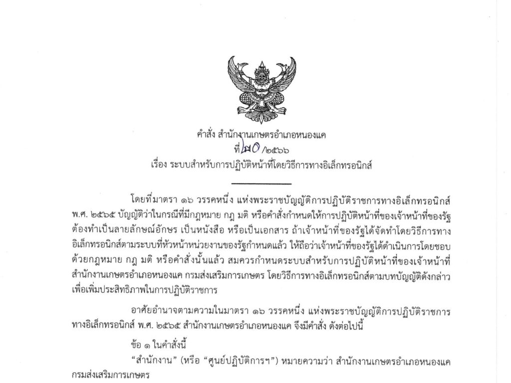 ข่าวประกาศคำสั่ง ระบบสำหรับการปฎิบัติหน้าที่โดยวิธีการทางอิเล็กทรอนิกส์ สำนักงานเกษตรอำเภอหนองแค / 09/10/2025