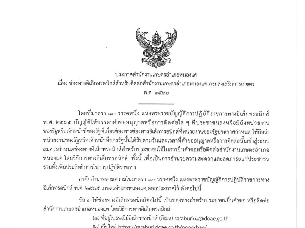 ข่าวประกาศช่องทางอิเล็กทรอนิกส์สำหรับติดต่อสำนักงานเกษตรอำเภอหนองแคกรมส่งเสริมการเกษตร สำนักงานเกษตรอำเภอหนองแค / 09/10/2025