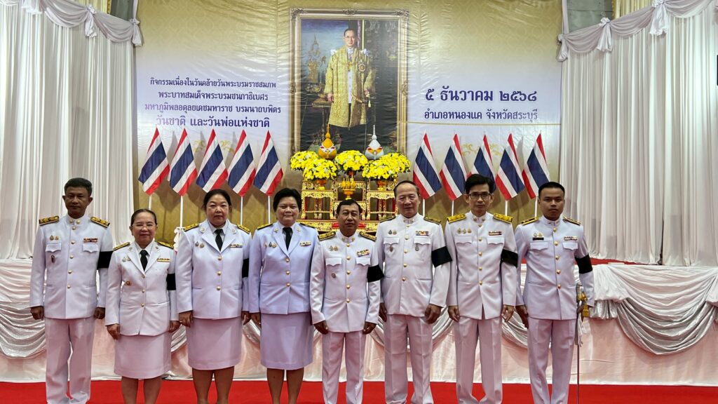 วันที่ 5 ธันวาคม 2568 นางสาวสิรยา เรืองศรี เกษตรอำเภอหนองแค พร้อมด้วยเจ้าหน้าที่สำนักงานเกษตรอำเภอหนองแค ร่วมกิจกรรมเนื่องในวันคล้ายวันพระบรมราชสมภพพระบาทสมเด็จพระบรมชนกาธิเบศรมหาภูมิพลอดุลยเดชมหาราช บรมนาถบพิตร วันชาติ และวันพ่อแห่งชาติ 5 ธันวาคม 2568 พิธีเจริญพระพุทธมนต์ ทำบุญตักบาตร และพิธีวางพุ่มดอกไม้ถวายบังคมเบื้องหน้าพระบรมฉายาลักษณ์พระบรมชนกาธิเบศร มหาภูมิพลอดุลยเดชมหาราช บรมนาถบพิตร เพื่อเป็นการถวายความจงรักภักดีและน้อมรำลึกในพระมหากรุณาธิคุณของพระบาทสมเด็จพระบรมชนกาธิเบศร มหาภูมิพลอดลยเดชมหาราช บรมนาถบพิตร ณ ที่ว่าการอำเภอหนองแค จังหวัดสระบุรี โดยมีนายสันทัศน์ รันดาเว นายอำเภอหนองแค เป็นประธานในพิธี