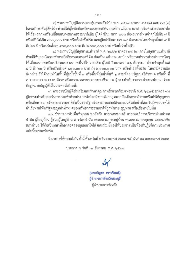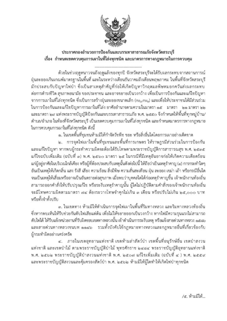 ประกาศกองอำนวยการป้องกันและบรรเทาสาธาธารณภัยจังหวัดสระบุรี