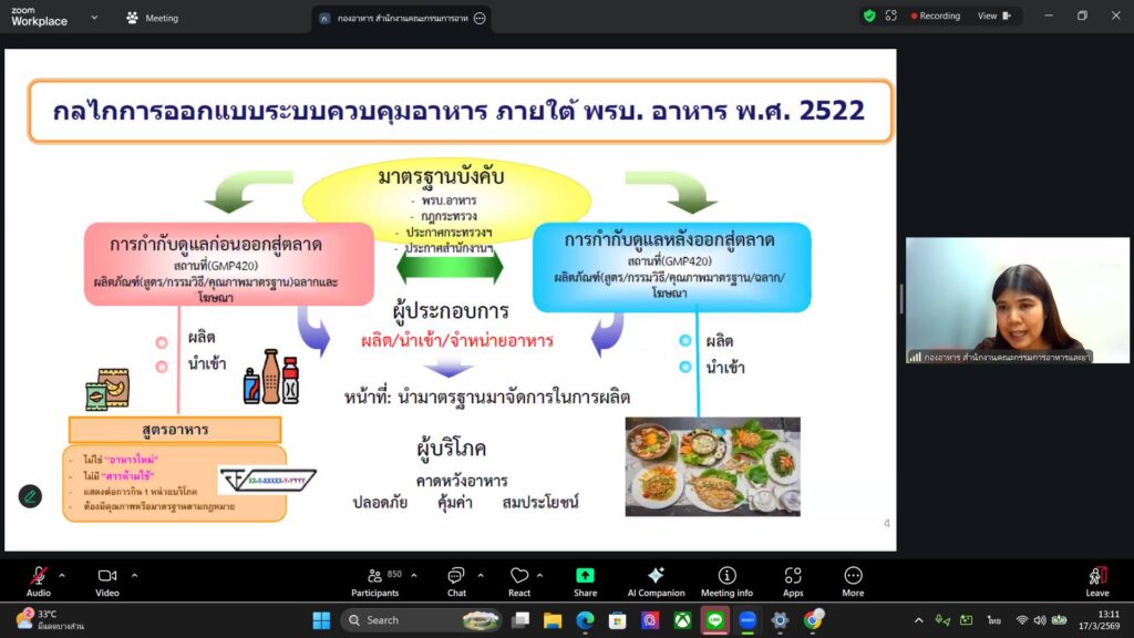 วันที่ ๑๗ มีนาคม ๒๕๖๙ นางสาวสิรยา เรืองศรี เกษตรอำเภอหนองแค มอบหมายให้ นางสาวฐิติมา ตรีโลเกศ นักวิชาการส่งเสริมการเกษตรปฏิบัติการ เข้าร่วมอบรมการพัฒนาทักษะเจ้าหน้าที่เพื่อเป็นที่ปรึกษาวิสาหกิจชุมชน ผ่านระบบออนไลน์ Zoom meeting โดยมีหัวข้อบรรยาย ดังนี้ การบรรยายให้ความรู้ ในหัวข้อเรื่อง ธุรกิจสีเขียว Green Business และ การขออนุญาตผลิตภัณฑ์อาหาร และการแสดง ฉลากอาหาร เพื่อการพัฒนาผลิตภัณฑ์วิสาหกิจชุมชน เพื่อให้เจ้าหน้าที่นำไปปรับใช้ในพื้นที่ต่อไป