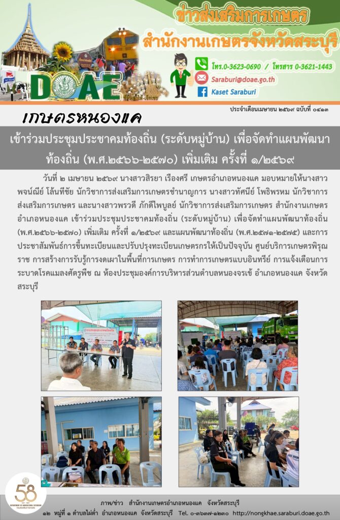 เกษตรหนองแค เข้าร่วมประชุมประชาคมท้องถิ่น (ระดับหมู่บ้าน) เพื่อจัดทำแผนพัฒนาท้องถิ่น (พ.ศ.2566-2570) เพิ่มเติม ครั้งที่ 1/2569By สำนักงานเกษตรอำเภอหนองแค / 23/04/2026
