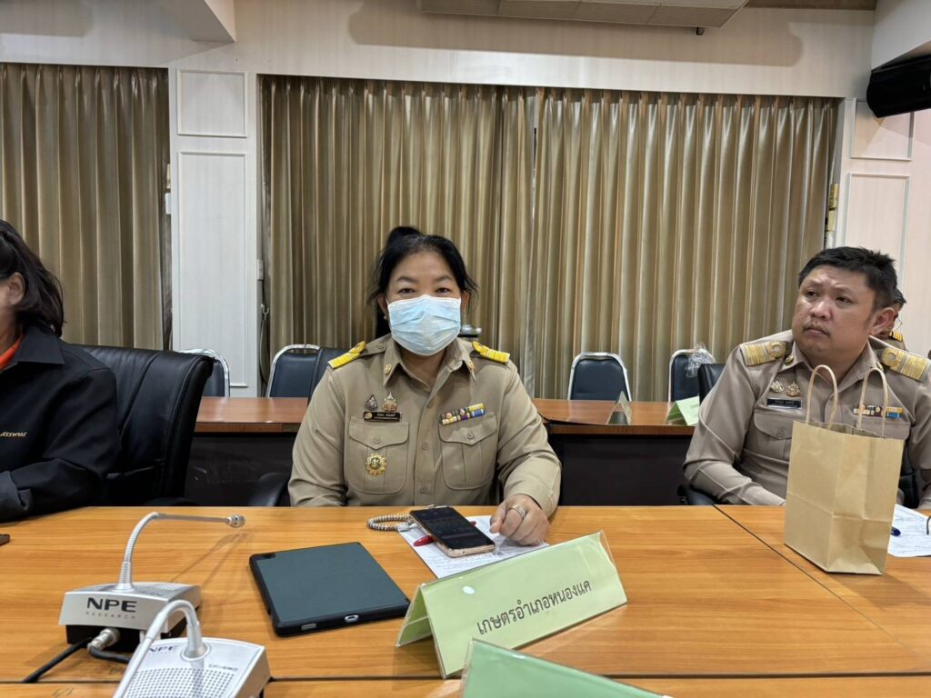 วันที่ 2 ตุลาคม 2568 นางสาวสิรยา เรืองศรี เกษตรอำเภอหนองแค ร่วมประชุมกำนัน ผู้ใหญ่บ้าน อำเภอหนองแค และหัวหน้าส่วนราชการ ประจำเดือนตุลาคม 2568 ณ หอประชุมที่ว่าการอำเภอหนองแค จังหวัดสระบุรี ประชาสัมพันธ์การปรับปรุงทะเบียนเกษตรกรให้เป็นปัจจุบัน การเตรียมความพร้อมรับมือสถานการณ์ภัยพิบัติ และศูนย์บริการเกษตรพิรุณราช เป็นศูนย์บริการประชาชนภาคการเกษตร